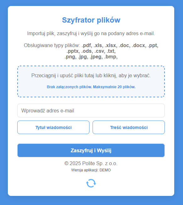 Przeciągnij pliki i wyślij je w zaszyfrowanej formie bez potrzeby instalacji dodatkowego oprogramowania.